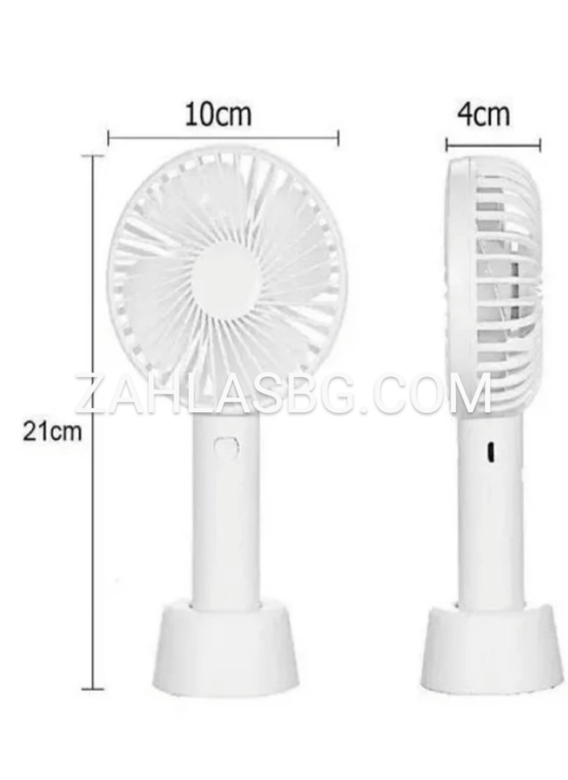 Включена акумулаторна батерия 18650, micro USB кабел за зареждане, връзка за носене и стойка за вентилатора, превръщаща го в настолен