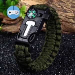 Представяме ви гривна за оцеляване на американската армия от здраво, паракорд въже Survival bracelet 3 в 1. Паракорд въжето или още наричано парашутна връв, е леко найлоново въже от типа „сърцевина с обшивка“. То може да бъде използвано в почти всички ситуации, където има нужда от тънка и лека връв. Въжето е намотано във формата на гривна. Чудесен аксесоар или подарък за всеки любител на природата и приключенията на открито. Прави се от 32 полиестерни нишки за оплетка и 7 найлонови, двойно сплетени нишки, свободно сложени вътре. Дължината на въжето е 3,5-4 метра, а на гривната 23.5 см. Освен въжето, гривната е снабдена с закопчалка със свирка и магнезиева пръчка за палене на огън.