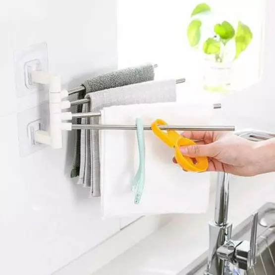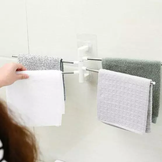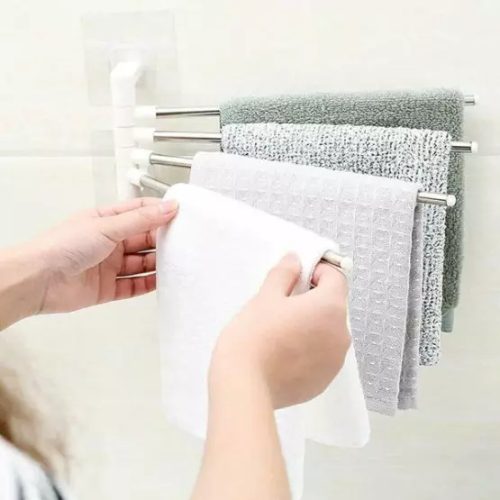 Въртящи се рамена: Тази закачалка за кърпи разполага с 4 въртящи се на 180 градуса рамена, което ви позволява да закачите мокрите и сухите кърпи едновременно, без да имат допир една с друга.