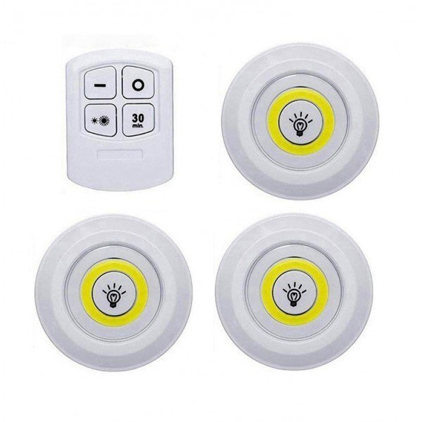 Удобни, енергоспестяващи LED лампи с дистанционно управление и таймер. Осигуряват осветление на места, които имат ограничен достъп до електроенергия. Регулиране яркостта на светлината според нуждите ви. Димер за намаляване на светлината и таймер за автоматично изключване. Таймер за изключване след 30 минути с дистанционно управление. Лампите могат да се включат / изключат и чрез бутона намиращ се в средата на всяка лампа. Лесна инсталация – няма нужда от проводници и винтове, можете да ги инсталиратена всякакви места с лепяща лента. Намират широко приложение като осветление за шкафове, гардероби, аварийно осветление, хотели, стаи, гаражи, каравани, палатки, товарните секции на бусове и камиони, декоративно осветление, а функцията автоматично изключване след 30 минути ги прави идеалните нощни лампи.
