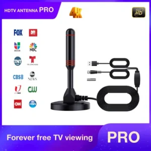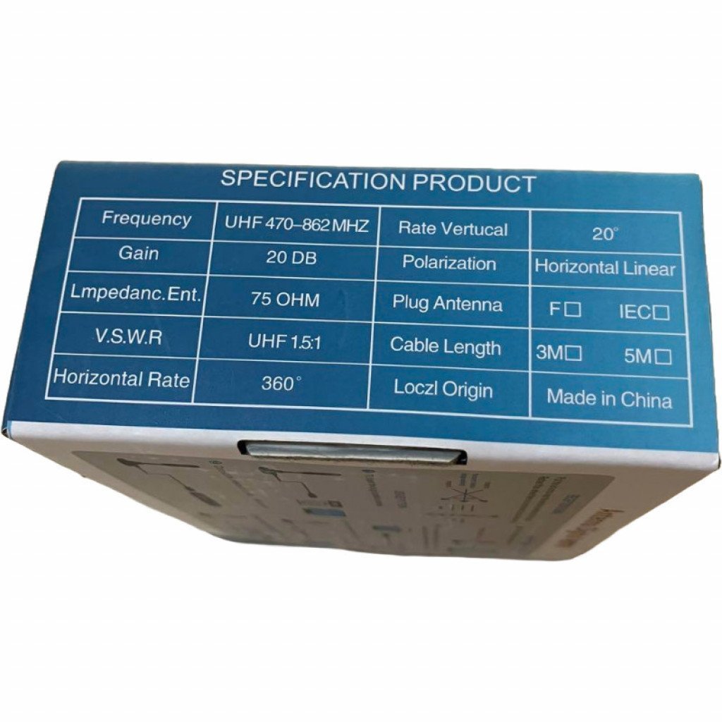 Дигитална HDTV антена с усилвател и 360° всепосочно приемане. Компактна, лесна за монтаж и съвместима с DVB-T/T2, ATSC, DTMB и ISDB стандарти за кристално качество на картината.