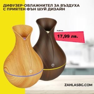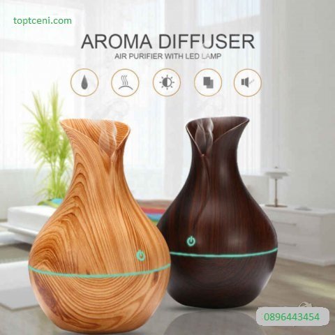 Арома дифузер с етерични масла за домашна ароматерапия е иновативен продукт, който разпръсква вода и етерични масла в дома ви. Добавете в резервоара вода и няколко капки от любимите ви етерични масла. Подходящ за дома, офиса, както и за салони и спа центрове! Може да се използва и само като овлажнител на въздуха, без да се добавя аромат Това е дифузер, който не разчита на топлина, за да изтласка аромата. Ултразвуковият дифузер създава малки вибрации (ултразвукови честоти) в комбинация с вода и етерично масло, което води до изпускане на фина мъгла във въздуха, която ароматизира помещението. Не използва топлина и не уврежда етеричното масло, както ароматизаторите със синтетични аромати.Дифузерът овлажнява, пречиства и йонизира въздуха ефективно, Можеш да го пуснеш да работи денонощно. Устройството ще се изключи автоматично, когато остане без вода