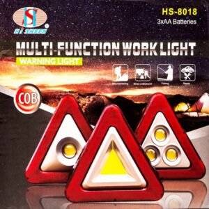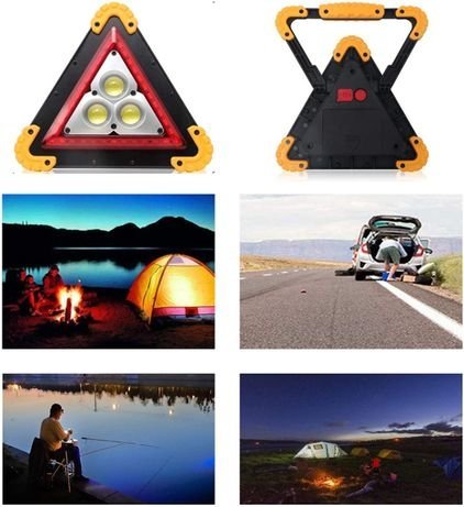 Представяме Ви светещият сигнален триъгълник Той ще Ви бъде под ръка, когато попаднете в неприятна ситуация на пътя. 3в1 е авариен прожектор с два режима на работа Авариен триъхълник с 2 режима на работа: постоянно или мигащо червено в триъгълник Той е идеален за извънредни ситуации на пътя, къмпинг и работа около къщата. Той има 5 режима на работа на светлината. Това е перфектно безжично осветление за смяна на гума или работа с кола. Има здрав и устойчив на атмосферни влияния и ударен дизайн. Снабден е със стойка, за да насочите светлината там, където е необходима. Работа със самозареждащи се със соларен панел батерии или 3 батерии АА