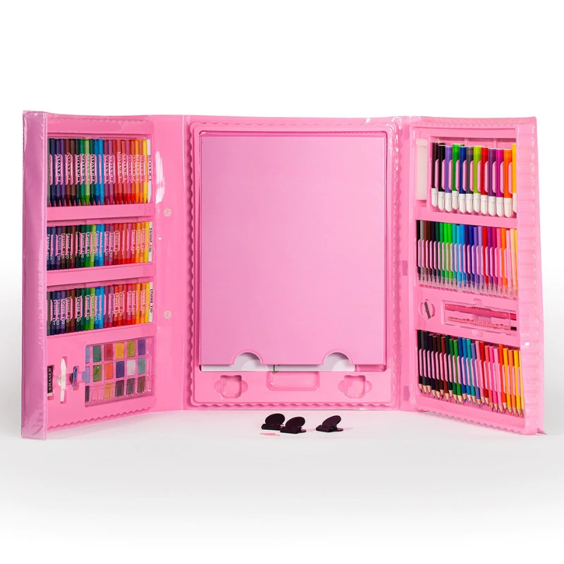 Ако детето ви е любител на изобразителното изкуство и обича да рисува, то имаме идеалният подарък, който може да му подарете. Вземете този невероятен комплект за рисуване, който се състои от 208 броя части. Той напълно ще задоволи всички изисквания на детето относно рисуването, защото включва всичко необходимо за едно истинско забавление. Комплектът съдържа 208 части: 12 броя мини маркера, 24 броя акварелни молива, 48 броя маслени пастели, 24 броя стандартни цветни моливи, 18 броя акварелни бои, 15 броя бели листа за рисуване, както и много други помощни материали.