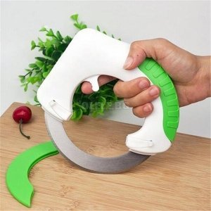 Страхотен кръгъл нож за рязане и кълцане на зеленчуци, подправки, месо или пица! Острието на ножа се върти на 360 градуса, което го прави много удобен и лесен за работа – за секунди реже или кълца на ситно. Удобната дръжка позволява здрав захват и не се изплъзва. Ножът има заключващ механизъм и предпазител за острието, което го прави безопасен при съхранение.