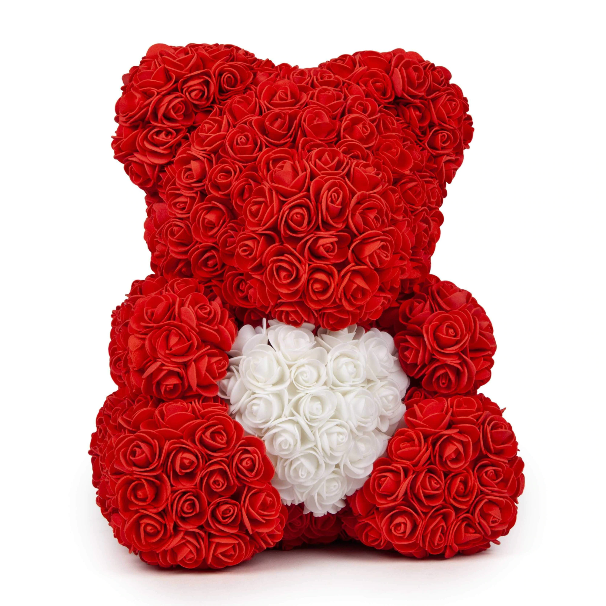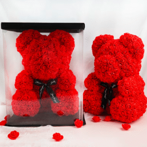 Забравете за обикновените букети! Това мече, изработено от червени рози, е най-нежният и елегантен начин да изразите чувствата си. Всяко мече е внимателно оформено от десетки малки розички, които не увяхват и запазват формата си с времето.