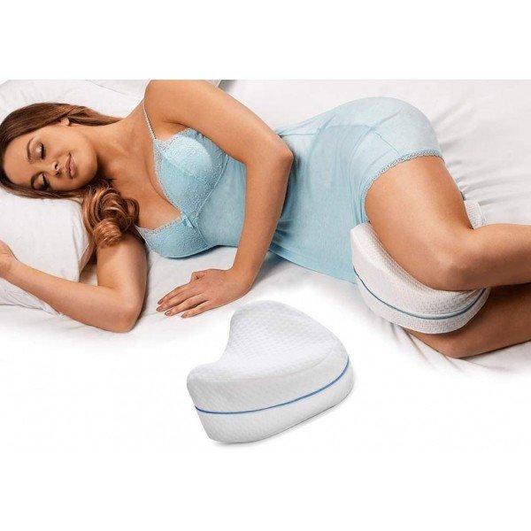 Възглавница от мемори пяна, проектирана да поддържа правилната позиция на тялото по време на сън. Поставя се между краката, а с ергономичния си дизайн спомага за изправянето на гръбнака, таза, облекчение в ставите, като поддържа краката в изправена позиция и елиминира възможността от схващания и болки. Благодарение на сполучливата ортопедична форма и мекотата от мемори пяната, тялото заема правилна позиция, напреженията изчезват и сънят е много по-здравословен и спокоен. Материята е дишаща, като не запарва, не изпотява, а калъфката може да се сваля и пере в пералня. Заоблените краища придават на коленете пълен набор от мобилност, за да позволят да се движиш през цялата нощ.