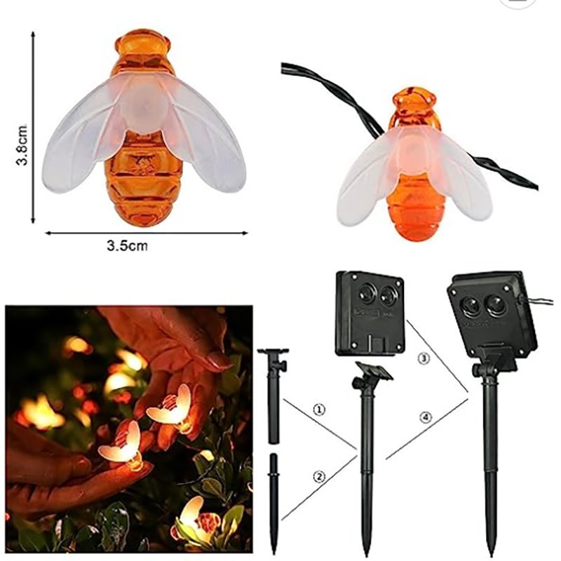 Създайте уют и приказна атмосфера в градината, двора или на терасата с тези соларни градински лампички пчелички. Зареждат се от слънцето през деня и светят автоматично през нощта, осигурявайки ефектна и безопасна светлина без кабели и батерии.