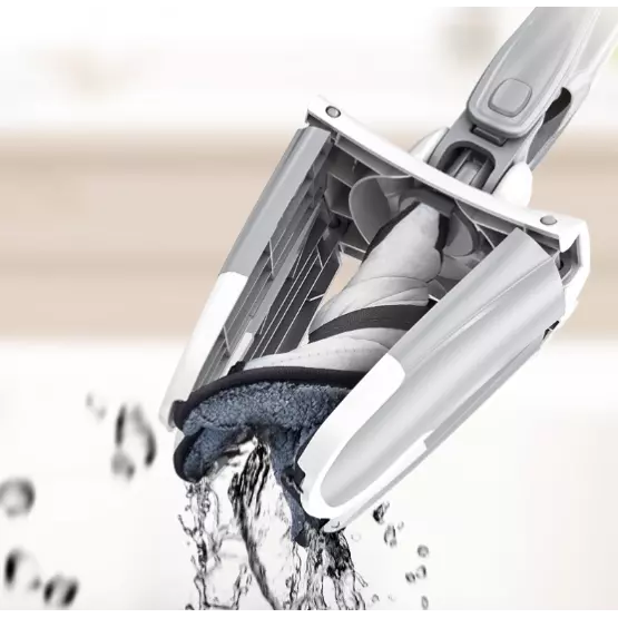 • Дръжката на мопа е със специален дизайн, който с едно движение изстисква водата от микрофибърната кърпа