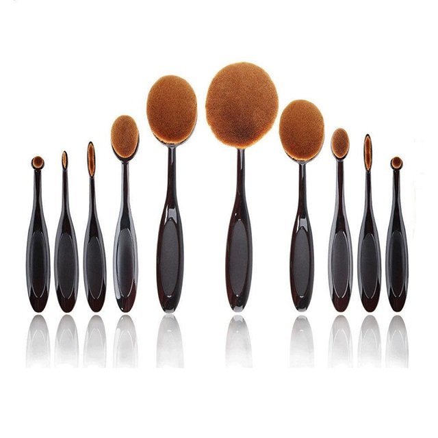 Комплектът съдържа 10 четки за професионално или любителско гримиране. Ако правите първите стъпки в качествения грим-това са вашите четки. С тях можете да подобрите уменията си в макиажа. Много са елегантни и ергономични, а главите са кръгли и напречно на дръжката. Приличат на слънчогледи, насочени към вашето лице.