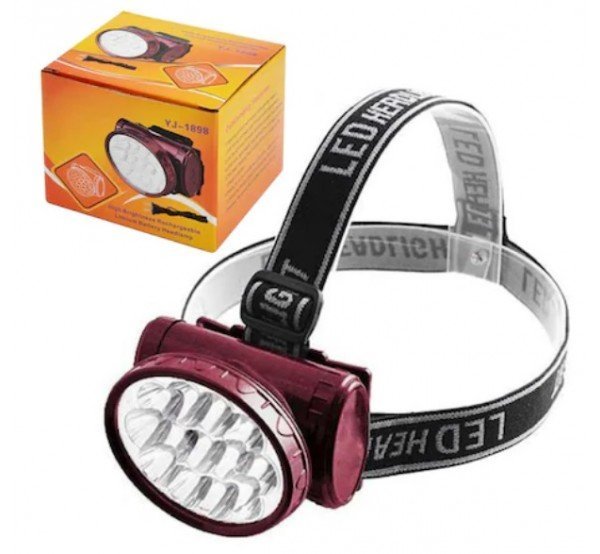 LED фенер за глава YJ-1898 работещ с 13 LED диодa с дълъг живот, 100Lm яркост и вграденаакумулаторна 1000mAh батерия.